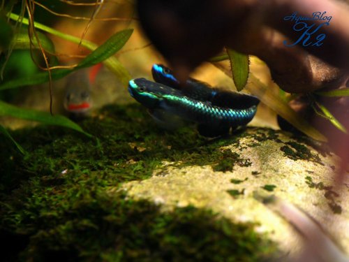 因為體型上比黑鰭枝牙蝦虎更站有優勢 所以牠們可以選擇較好的地形作為巢穴 通常在一小型水域裡大多只會有一隻公魚 然後就在那窟水域定下來了 同類的公魚互不往來... 紫身枝牙的母於則是跟黑鰭枝牙的母魚混在一起(枝牙類母魚大多都是族群共棲.混棲的 與公魚不同!)