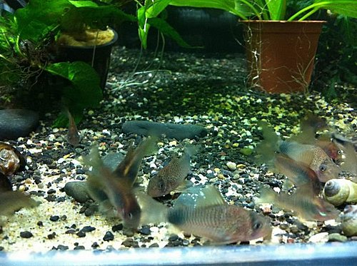 把底砂全部打撈起來 換上我看習慣混合砂~ 魚隻開始移民 丟入幾盆小草來壓壓驚