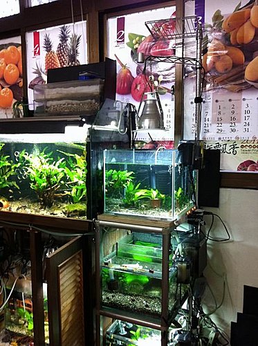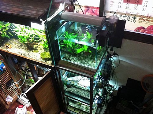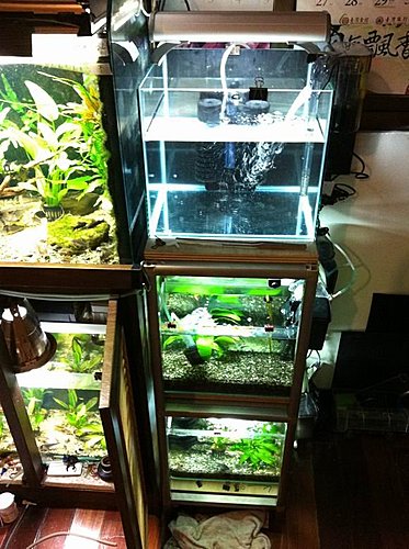上個月訂做了一個新缸來替換掉原來的小缸 原因是兩個小缸背對背的擺設在我管理上很礙手 觀察上更不便 忍了很久終於擴建了~