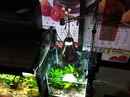 裝上小外掛.跨燈.雙管水妖精 來試水一下 下了NatureAqua的X-2菌培養三天~