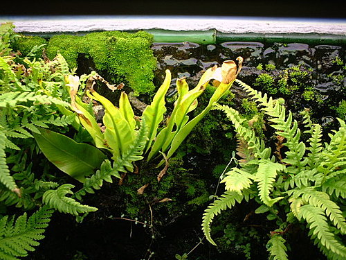 蕨類植物為主的水陸景缸在半封閉的情形下 最大的問題應該就是光罩.空間的競爭了