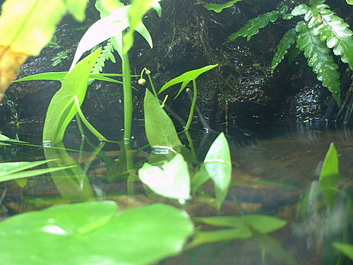 經過一段時間的証明.姑婆芋跟水芋都不適合水陸缸.還是慈菇比較恰當^^